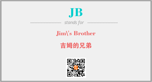 上述内容是“Jim\'s Brother”作为“JB”的缩写,解释为“吉姆的兄弟”时的信息,以及英文缩略词JB所代表的英文单词,其对应的中文拼音、详细解释以及在英文中的流行度和相关分类、应用领域及应用示例等。