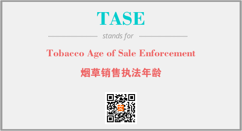 上述内容是“Tobacco Age of Sale Enforcement”作为“TASE”的缩写,解释为“烟草销售执法年龄”时的信息,以及英文缩略词TASE所代表的英文单词,其对应的中文拼音、详细解释以及在英文中的流行度和相关分类、应用领域及应用示例等。