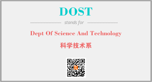 英文缩略词“DOST”经常作为“Dept Of Science And Technology”的英文缩写来使用,中文表示:“科学技术系”。本文将详细介绍英文缩写词DOST所代表英文单词,其对应的中文拼音、详细解释以及在英语中的流行度。此外,还有关于缩略词DOST的分类、应用领域及相关应用示例等。
