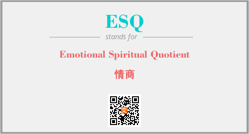 上述内容是“Emotional Spiritual Quotient”作为“ESQ”的缩写,解释为“情商”时的信息,以及英文缩略词ESQ所代表的英文单词,其对应的中文拼音、详细解释以及在英文中的流行度和相关分类、应用领域及应用示例等。