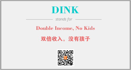 上述内容是“Double Income, No Kids”作为“DINK”的缩写,解释为“双倍收入,没有孩子”时的信息,以及英文缩略词DINK所代表的英文单词,其对应的中文拼音、详细解释以及在英文中的流行度和相关分类、应用领域及应用示例等。