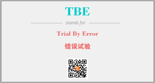 以上为Trial By Error英文缩略词TBE的中文解释,以及该英文缩写在英语的流行度、分类和应用领域方面的信息。