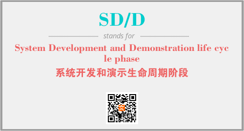上述内容是“System Development and Demonstration life cycle phase”作为“SD/D”的缩写,解释为“系统开发和演示生命周期阶段”时的信息,以及英文缩略词SD/D所代表的英文单词,其对应的中文拼音、详细解释以及在英文中的流行度和相关分类、应用领域及应用示例等。