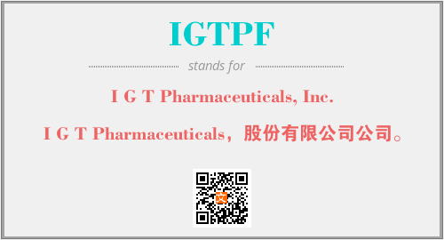 上述内容是“I G T Pharmaceuticals, Inc.”作为“IGTPF”的缩写,解释为“I G T Pharmaceuticals,股份有限公司公司。”时的信息,以及英文缩略词IGTPF所代表的英文单词,其对应的中文拼音、详细解释以及在英文中的流行度和相关分类、应用领域及应用示例等。