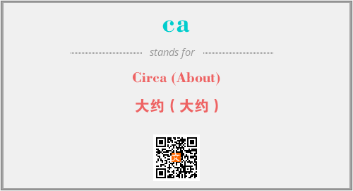 英文缩略词“ca”经常作为“Circa (About)”的英文缩写来使用,中文表示:“大约(大约)”。本文将详细介绍英文缩写词ca所代表英文单词,其对应的中文拼音、详细解释以及在英语中的流行度。此外,还有关于缩略词ca的分类、应用领域及相关应用示例等。