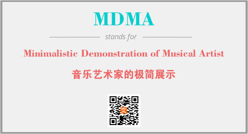 上述内容是“Minimalistic Demonstration of Musical Artist”作为“MDMA”的缩写,解释为“音乐艺术家的极简展示”时的信息,以及英文缩略词MDMA所代表的英文单词,其对应的中文拼音、详细解释以及在英文中的流行度和相关分类、应用领域及应用示例等。