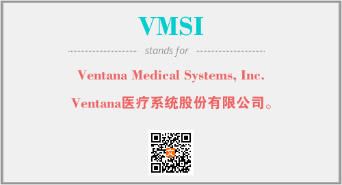 上述内容是“Ventana Medical Systems, Inc.”作为“VMSI”的缩写,解释为“Ventana医疗系统股份有限公司。”时的信息,以及英文缩略词VMSI所代表的英文单词,其对应的中文拼音、详细解释以及在英文中的流行度和相关分类、应用领域及应用示例等。