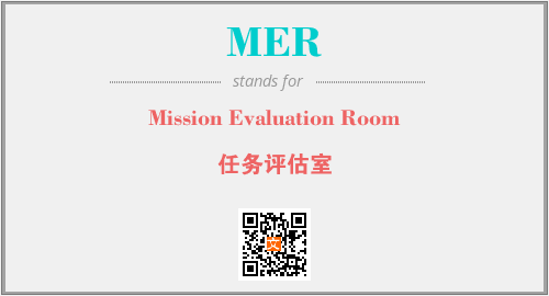 英文缩略词“MER”经常作为“Mission Evaluation Room”的英文缩写来使用,中文表示:“任务评估室”。本文将详细介绍英文缩写词MER所代表英文单词,其对应的中文拼音、详细解释以及在英语中的流行度。此外,还有关于缩略词MER的分类、应用领域及相关应用示例等。