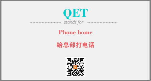 英文缩略词“QET”经常作为“Phone home”的英文缩写来使用,中文表示:“给总部打电话”。本文将详细介绍英文缩写词QET所代表英文单词,其对应的中文拼音、详细解释以及在英语中的流行度。此外,还有关于缩略词QET的分类、应用领域及相关应用示例等。