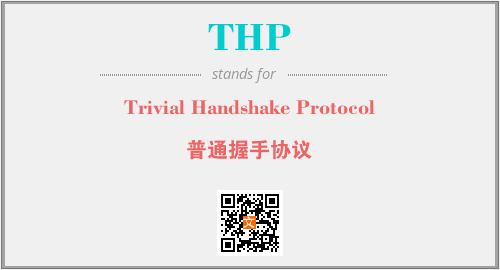 英文缩略词“THP”经常作为“Trivial Handshake Protocol”的英文缩写来使用,中文表示:“普通握手协议”。本文将详细介绍英文缩写词THP所代表英文单词,其对应的中文拼音、详细解释以及在英语中的流行度。此外,还有关于缩略词THP的分类、应用领域及相关应用示例等。