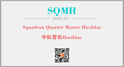 英文缩略词“SQMH”经常作为“Squadron Quarter Master Havildar”的英文缩写来使用,中文表示:“中队营长Havildar”。本文将详细介绍英文缩写词SQMH所代表英文单词,其对应的中文拼音、详细解释以及在英语中的流行度。此外,还有关于缩略词SQMH的分类、应用领域及相关应用示例等。