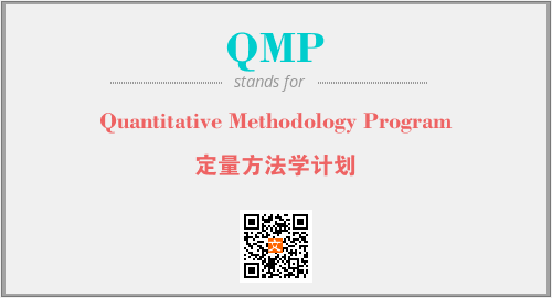 上述内容是“Quantitative Methodology Program”作为“QMP”的缩写,解释为“定量方法学计划”时的信息,以及英文缩略词QMP所代表的英文单词,其对应的中文拼音、详细解释以及在英文中的流行度和相关分类、应用领域及应用示例等。