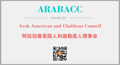 上述内容是“Arab American and Chaldean Council”作为“ARABACC”的缩写,解释为“阿拉伯裔美国人和迦勒底人理事会”时的信息,以及英文缩略词ARABACC所代表的英文单词,其对应的中文拼音、详细解释以及在英文中的流行度和相关分类、应用领域及应用示例等。