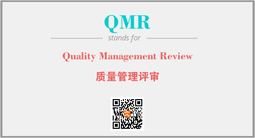 英文缩略词“QMR”经常作为“Quality Management Review”的英文缩写来使用,中文表示:“质量管理评审”。本文将详细介绍英文缩写词QMR所代表英文单词,其对应的中文拼音、详细解释以及在英语中的流行度。此外,还有关于缩略词QMR的分类、应用领域及相关应用示例等。