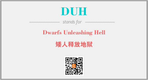 英文缩略词“DUH”经常作为“Dwarfs Unleashing Hell”的英文缩写来使用,中文表示:“矮人释放地狱”。本文将详细介绍英文缩写词DUH所代表英文单词,其对应的中文拼音、详细解释以及在英语中的流行度。此外,还有关于缩略词DUH的分类、应用领域及相关应用示例等。