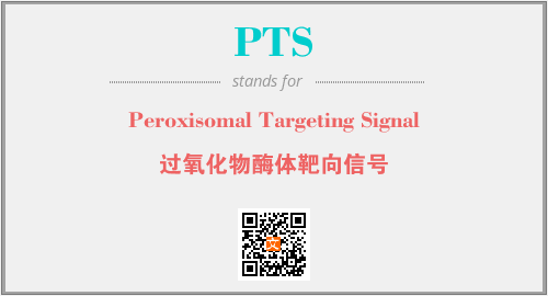 英文缩略词“PTS”经常作为“Peroxisomal Targeting Signal”的英文缩写来使用,中文表示:“过氧化物酶体靶向信号”。本文将详细介绍英文缩写词PTS所代表英文单词,其对应的中文拼音、详细解释以及在英语中的流行度。此外,还有关于缩略词PTS的分类、应用领域及相关应用示例等。