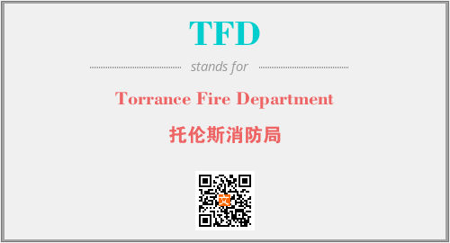 上述内容是“Torrance Fire Department”作为“TFD”的缩写,解释为“托伦斯消防局”时的信息,以及英文缩略词TFD所代表的英文单词,其对应的中文拼音、详细解释以及在英文中的流行度和相关分类、应用领域及应用示例等。