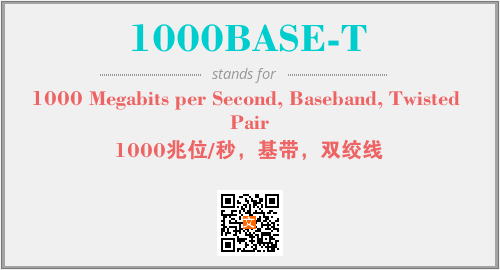 英文缩略词“1000BASE-T”经常作为“1000 Megabits per Second, Baseband, Twisted Pair”的英文缩写来使用,中文表示:“1000兆位/秒,基带,双绞线”。本文将详细介绍英文缩写词1000BASE-T所代表英文单词,其对应的中文拼音、详细解释以及在英语中的流行度。此外,还有关于缩略词1000BASE-T的分类、应用领域及相关应用示例等。
