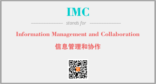 英文缩略词“IMC”经常作为“Information Management and Collaboration”的英文缩写来使用,中文表示:“信息管理和协作”。本文将详细介绍英文缩写词IMC所代表英文单词,其对应的中文拼音、详细解释以及在英语中的流行度。此外,还有关于缩略词IMC的分类、应用领域及相关应用示例等。