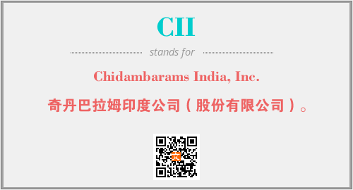 上述内容是“Chidambarams India, Inc.”作为“CII”的缩写,解释为“奇丹巴拉姆印度公司(股份有限公司)。”时的信息,以及英文缩略词CII所代表的英文单词,其对应的中文拼音、详细解释以及在英文中的流行度和相关分类、应用领域及应用示例等。