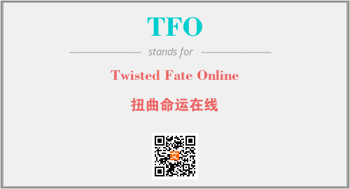 英文缩略词“TFO”经常作为“Twisted Fate Online”的英文缩写来使用,中文表示:“扭曲命运在线”。本文将详细介绍英文缩写词TFO所代表英文单词,其对应的中文拼音、详细解释以及在英语中的流行度。此外,还有关于缩略词TFO的分类、应用领域及相关应用示例等。