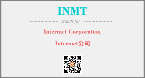 上述内容是“Intermet Corporation”作为“INMT”的缩写,解释为“Intermet公司”时的信息,以及英文缩略词INMT所代表的英文单词,其对应的中文拼音、详细解释以及在英文中的流行度和相关分类、应用领域及应用示例等。