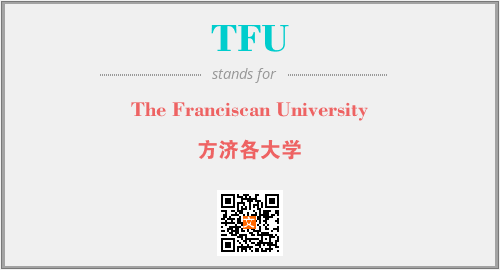 英文缩略词“TFU”经常作为“The Franciscan University”的英文缩写来使用,中文表示:“方济各大学”。本文将详细介绍英文缩写词TFU所代表英文单词,其对应的中文拼音、详细解释以及在英语中的流行度。此外,还有关于缩略词TFU的分类、应用领域及相关应用示例等。