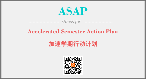 以上为Accelerated Semester Action Plan英文缩略词ASAP的中文解释,以及该英文缩写在英语的流行度、分类和应用领域方面的信息。