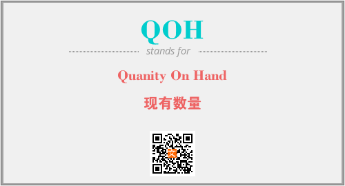 英文缩略词“QOH”经常作为“Quanity On Hand”的英文缩写来使用,中文表示:“现有数量”。本文将详细介绍英文缩写词QOH所代表英文单词,其对应的中文拼音、详细解释以及在英语中的流行度。此外,还有关于缩略词QOH的分类、应用领域及相关应用示例等。