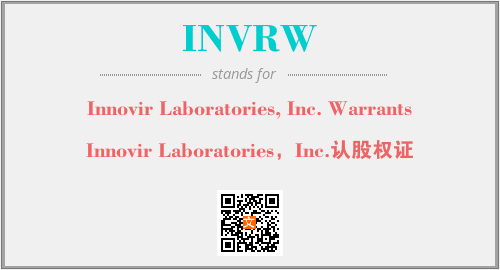 上述内容是“Innovir Laboratories, Inc. Warrants”作为“INVRW”的缩写,解释为“Innovir Laboratories,Inc.认股权证”时的信息,以及英文缩略词INVRW所代表的英文单词,其对应的中文拼音、详细解释以及在英文中的流行度和相关分类、应用领域及应用示例等。