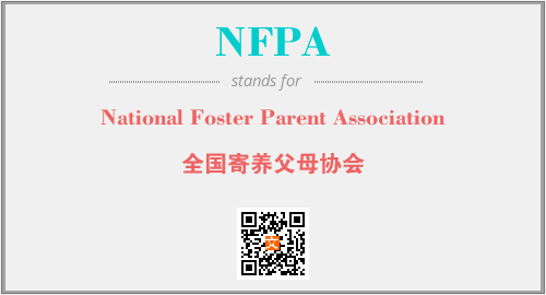英文缩略词“NFPA”经常作为“National Foster Parent Association”的英文缩写来使用,中文表示:“全国寄养父母协会”。本文将详细介绍英文缩写词NFPA所代表英文单词,其对应的中文拼音、详细解释以及在英语中的流行度。此外,还有关于缩略词NFPA的分类、应用领域及相关应用示例等。