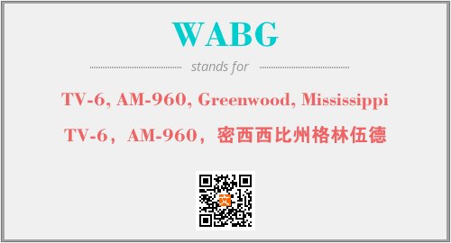 上述内容是“TV-6, AM-960, Greenwood, Mississippi”作为“WABG”的缩写,解释为“TV-6,AM-960,密西西比州格林伍德”时的信息,以及英文缩略词WABG所代表的英文单词,其对应的中文拼音、详细解释以及在英文中的流行度和相关分类、应用领域及应用示例等。