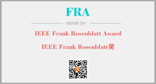 上述内容是“IEEE Frank Rosenblatt Award”作为“FRA”的缩写,解释为“IEEE Frank Rosenblatt奖”时的信息,以及英文缩略词FRA所代表的英文单词,其对应的中文拼音、详细解释以及在英文中的流行度和相关分类、应用领域及应用示例等。