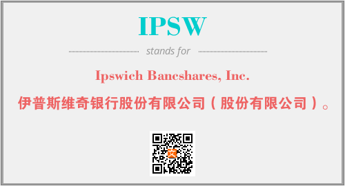 上述内容是“Ipswich Bancshares, Inc.”作为“IPSW”的缩写,解释为“伊普斯维奇银行股份有限公司(股份有限公司)。”时的信息,以及英文缩略词IPSW所代表的英文单词,其对应的中文拼音、详细解释以及在英文中的流行度和相关分类、应用领域及应用示例等。