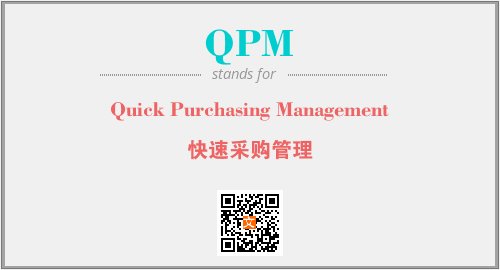 英文缩略词“QPM”经常作为“Quick Purchasing Management”的英文缩写来使用,中文表示:“快速采购管理”。本文将详细介绍英文缩写词QPM所代表英文单词,其对应的中文拼音、详细解释以及在英语中的流行度。此外,还有关于缩略词QPM的分类、应用领域及相关应用示例等。