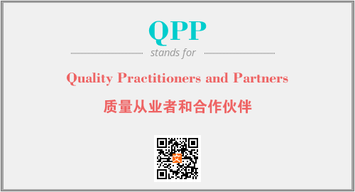 英文缩略词“QPP”经常作为“Quality Practitioners and Partners”的英文缩写来使用,中文表示:“质量从业者和合作伙伴”。本文将详细介绍英文缩写词QPP所代表英文单词,其对应的中文拼音、详细解释以及在英语中的流行度。此外,还有关于缩略词QPP的分类、应用领域及相关应用示例等。