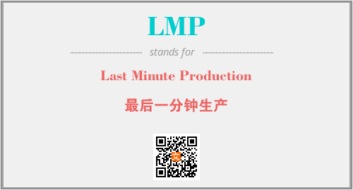 英文缩略词“LMP”经常作为“Last Minute Production”的英文缩写来使用,中文表示:“最后一分钟生产”。本文将详细介绍英文缩写词LMP所代表英文单词,其对应的中文拼音、详细解释以及在英语中的流行度。此外,还有关于缩略词LMP的分类、应用领域及相关应用示例等。