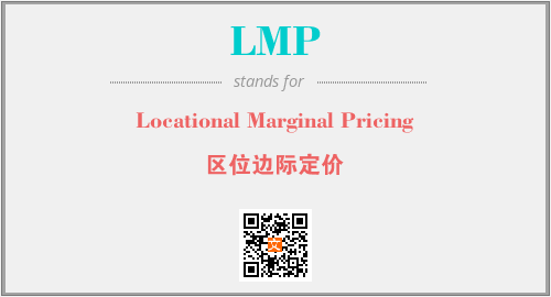 英文缩略词“LMP”经常作为“Locational Marginal Pricing”的英文缩写来使用,中文表示:“区位边际定价”。本文将详细介绍英文缩写词LMP所代表英文单词,其对应的中文拼音、详细解释以及在英语中的流行度。此外,还有关于缩略词LMP的分类、应用领域及相关应用示例等。
