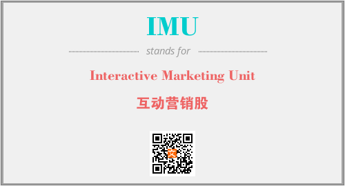 上述内容是“Interactive Marketing Unit”作为“IMU”的缩写,解释为“互动营销股”时的信息,以及英文缩略词IMU所代表的英文单词,其对应的中文拼音、详细解释以及在英文中的流行度和相关分类、应用领域及应用示例等。