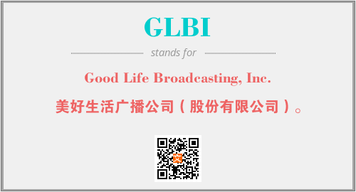 上述内容是“Good Life Broadcasting, Inc.”作为“GLBI”的缩写,解释为“美好生活广播公司(股份有限公司)。”时的信息,以及英文缩略词GLBI所代表的英文单词,其对应的中文拼音、详细解释以及在英文中的流行度和相关分类、应用领域及应用示例等。