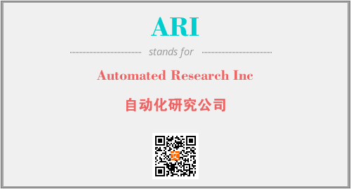 上述内容是“Automated Research Inc”作为“ARI”的缩写,解释为“自动化研究公司”时的信息,以及英文缩略词ARI所代表的英文单词,其对应的中文拼音、详细解释以及在英文中的流行度和相关分类、应用领域及应用示例等。