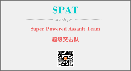 以上为Super Powered Assault Team英文缩略词SPAT的中文解释,以及该英文缩写在英语的流行度、分类和应用领域方面的信息。