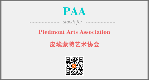 英文缩略词“PAA”经常作为“Piedmont Arts Association”的英文缩写来使用,中文表示:“皮埃蒙特艺术协会”。本文将详细介绍英文缩写词PAA所代表英文单词,其对应的中文拼音、详细解释以及在英语中的流行度。此外,还有关于缩略词PAA的分类、应用领域及相关应用示例等。