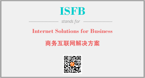 英文缩略词“ISFB”经常作为“Internet Solutions for Business”的英文缩写来使用,中文表示:“商务互联网解决方案”。本文将详细介绍英文缩写词ISFB所代表英文单词,其对应的中文拼音、详细解释以及在英语中的流行度。此外,还有关于缩略词ISFB的分类、应用领域及相关应用示例等。