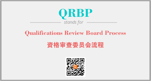 英文缩略词“QRBP”经常作为“Qualifications Review Board Process”的英文缩写来使用,中文表示:“资格审查委员会流程”。本文将详细介绍英文缩写词QRBP所代表英文单词,其对应的中文拼音、详细解释以及在英语中的流行度。此外,还有关于缩略词QRBP的分类、应用领域及相关应用示例等。
