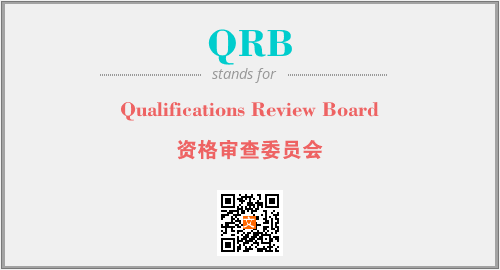 英文缩略词“QRB”经常作为“Qualifications Review Board”的英文缩写来使用,中文表示:“资格审查委员会”。本文将详细介绍英文缩写词QRB所代表英文单词,其对应的中文拼音、详细解释以及在英语中的流行度。此外,还有关于缩略词QRB的分类、应用领域及相关应用示例等。