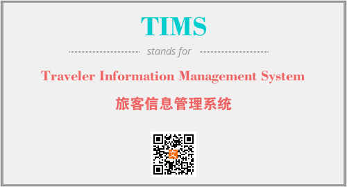 英文缩略词“TIMS”经常作为“Traveler Information Management System”的英文缩写来使用,中文表示:“旅客信息管理系统”。本文将详细介绍英文缩写词TIMS所代表英文单词,其对应的中文拼音、详细解释以及在英语中的流行度。此外,还有关于缩略词TIMS的分类、应用领域及相关应用示例等。