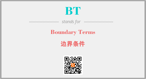 上述内容是“Boundary Terms”作为“BT”的缩写,解释为“边界条件”时的信息,以及英文缩略词BT所代表的英文单词,其对应的中文拼音、详细解释以及在英文中的流行度和相关分类、应用领域及应用示例等。