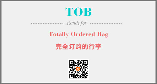 英文缩略词“TOB”经常作为“Totally Ordered Bag”的英文缩写来使用,中文表示:“完全订购的行李”。本文将详细介绍英文缩写词TOB所代表英文单词,其对应的中文拼音、详细解释以及在英语中的流行度。此外,还有关于缩略词TOB的分类、应用领域及相关应用示例等。