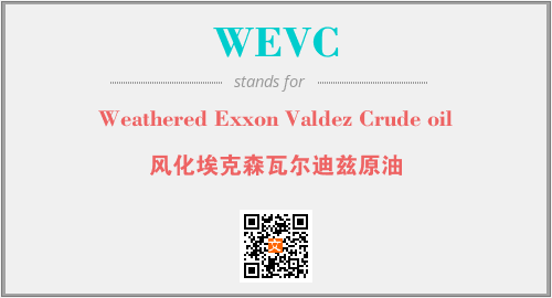 上述内容是“Weathered Exxon Valdez Crude oil”作为“WEVC”的缩写,解释为“风化埃克森瓦尔迪兹原油”时的信息,以及英文缩略词WEVC所代表的英文单词,其对应的中文拼音、详细解释以及在英文中的流行度和相关分类、应用领域及应用示例等。